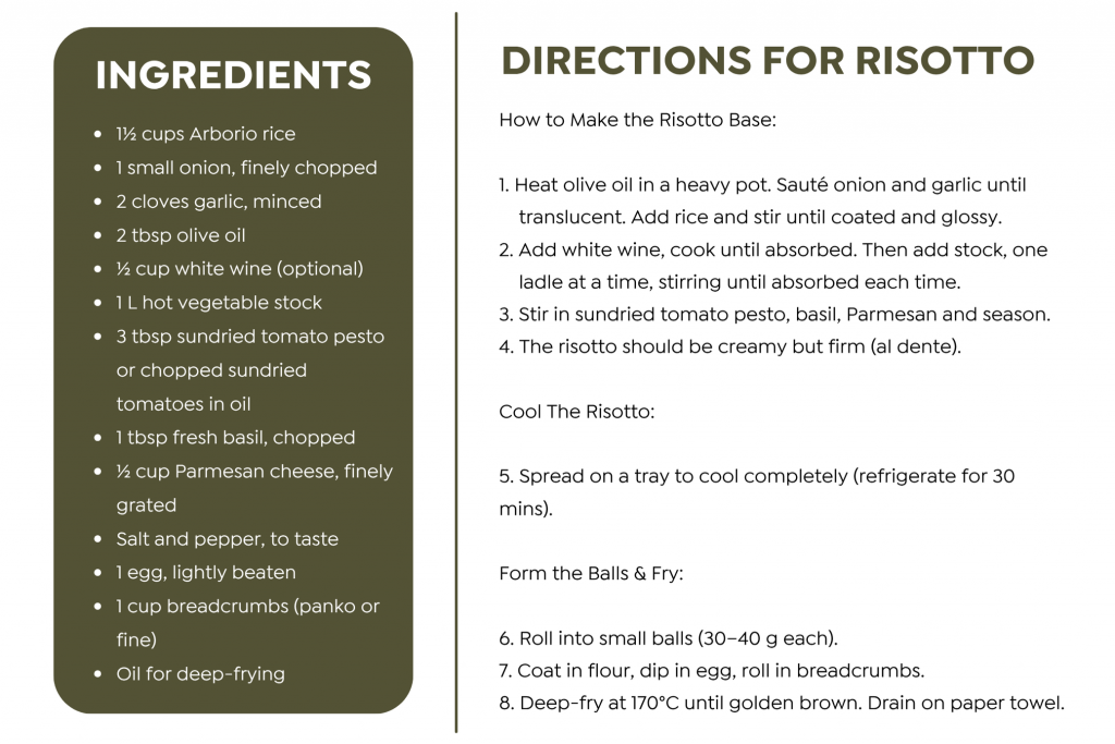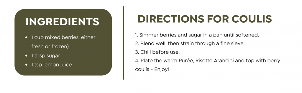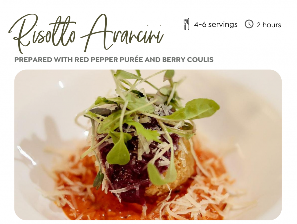 • Sundried tomato and basil arancini with smoked red pepper and berry notes