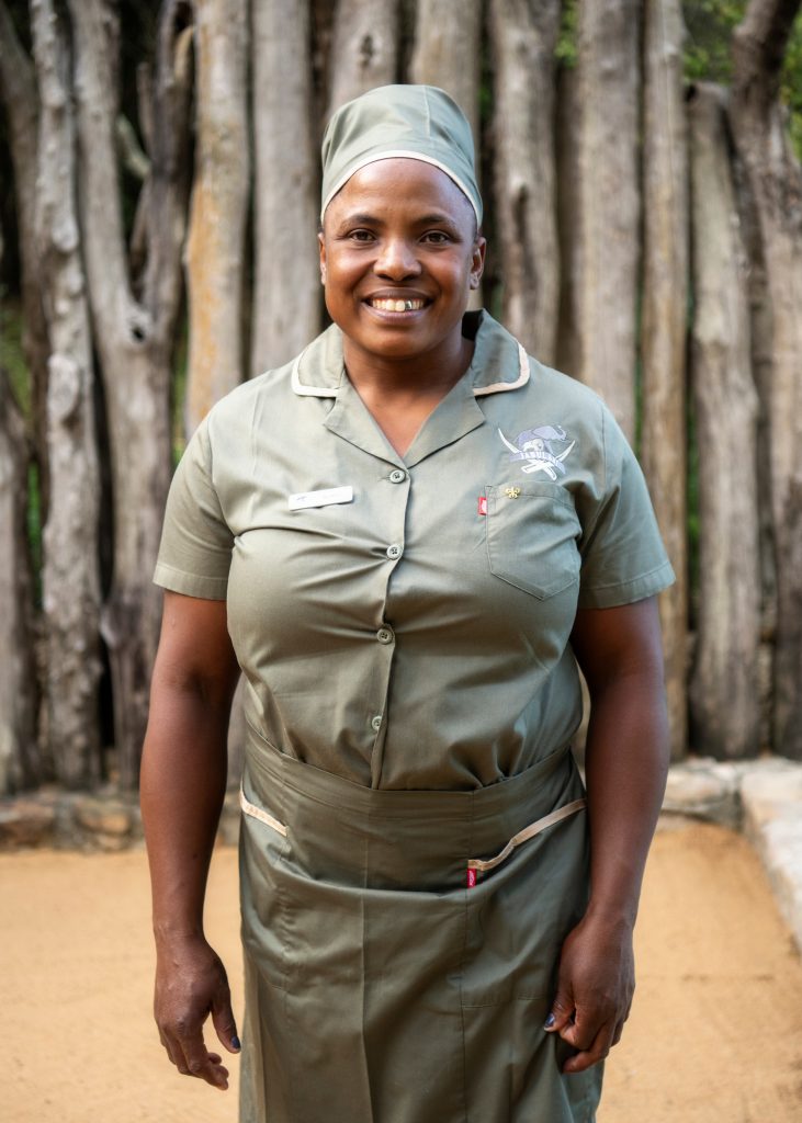 Our Laundry team is hard at work in the background, ensuring that guests can enjoy a peaceful night’s sleep on crisp linen. These ladies have perfected the art of getting elephant mud on their guests’ clothes. Mama Lydia, with her contagious laughter, always keeps me on my toes. Not a day goes by without her calling me a Mafufunyana (Sepedi for ‘crazy person’). The banter she offers always puts a smile on my face. The mom-and-daughter duo, Dorcus and Loraine, with their peaceful demeanour, take extra care, especially when it comes to guest clothes, to ensure that every guest feels loved and looked after. Hellen, with her flawless skin and radiant beauty & elegance, takes care of all the small details, ensuring that every piece of linen is flawless.